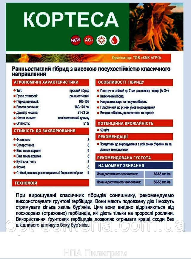 Насіння соняшнику Кортеса КМК Агро — це ключ до успішного сільськогосподарського виробництва. З цим продуктом ви отримаєте надійного партнера в досягненні багатих урожаїв і високої якості продукції.